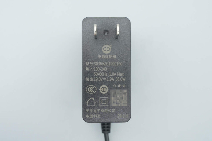 天宝36W电源适配器自带DC输出线缆,整体为经典样式设计,机身表面磨砂工艺处理抗指纹。