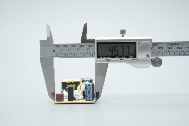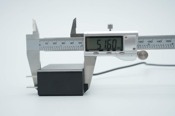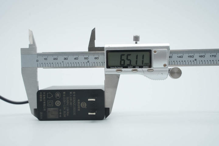 实测电源适配器机身长度为65.11mm。