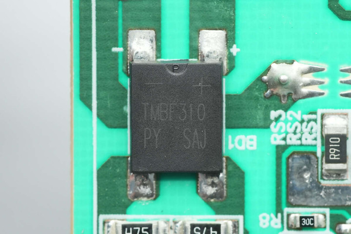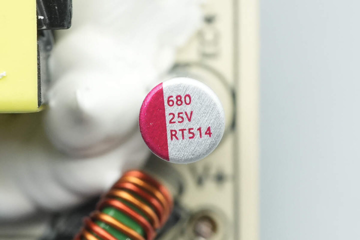 输出滤波固态电容来自柏瑞凯,规格为25V680μF。