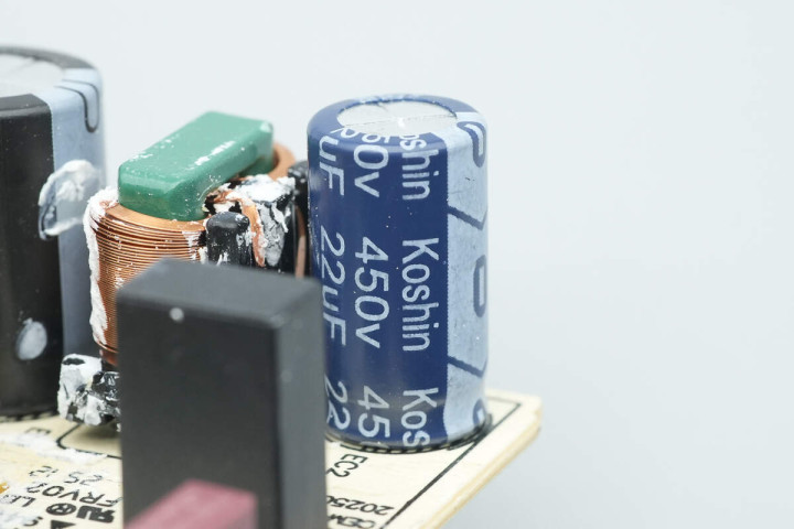 高压滤波电解电容来自东佳,规格为450V22μF。