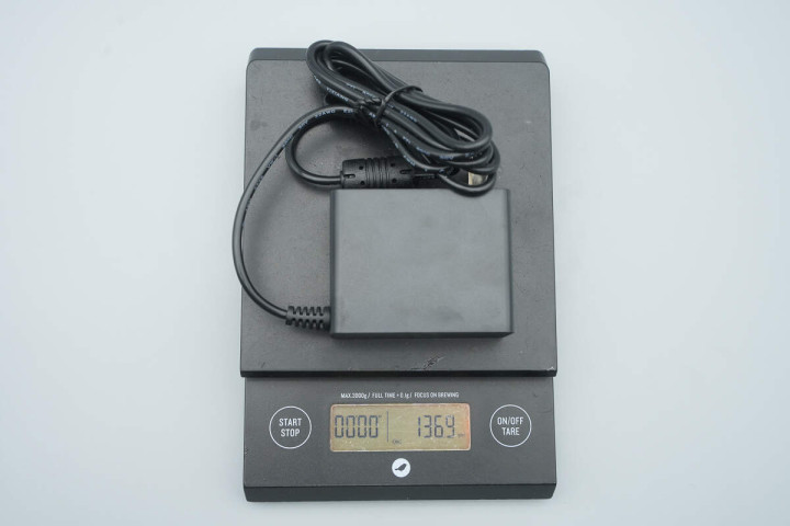 最后测得天宝36W电源适配器重量约为137g。